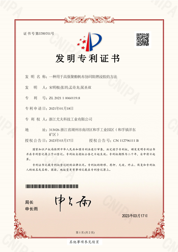 發(fā)明-一種用于高強聚酯帆布協(xié)同阻燃浸膠的方法