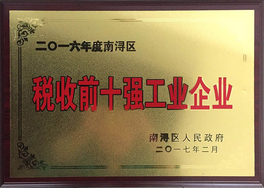 2016年度南潯區(qū)稅收前十強企業(yè)