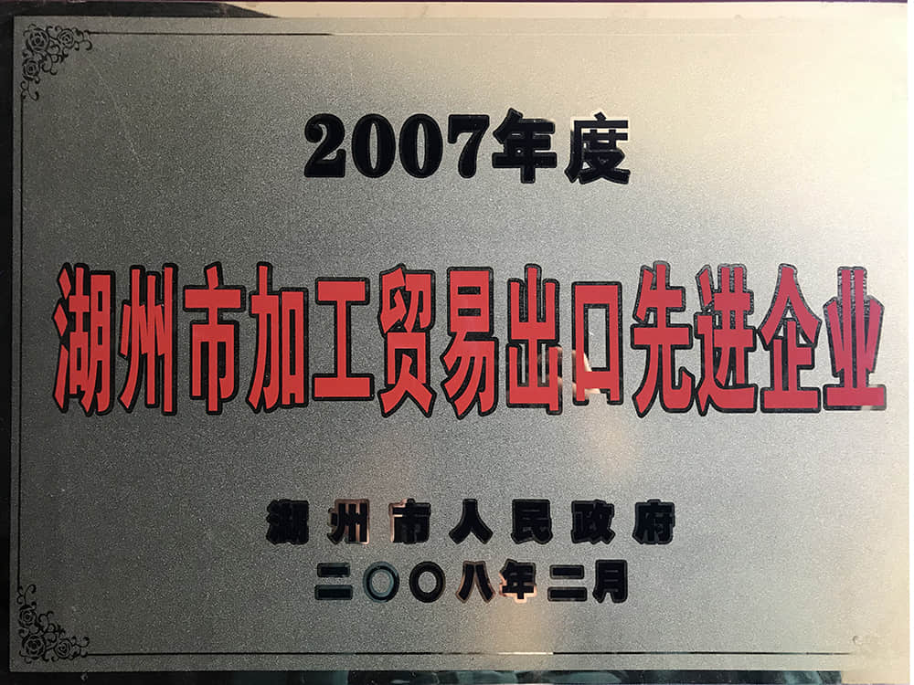 2007年度湖州市加工貿(mào)易出口先進企業(yè)